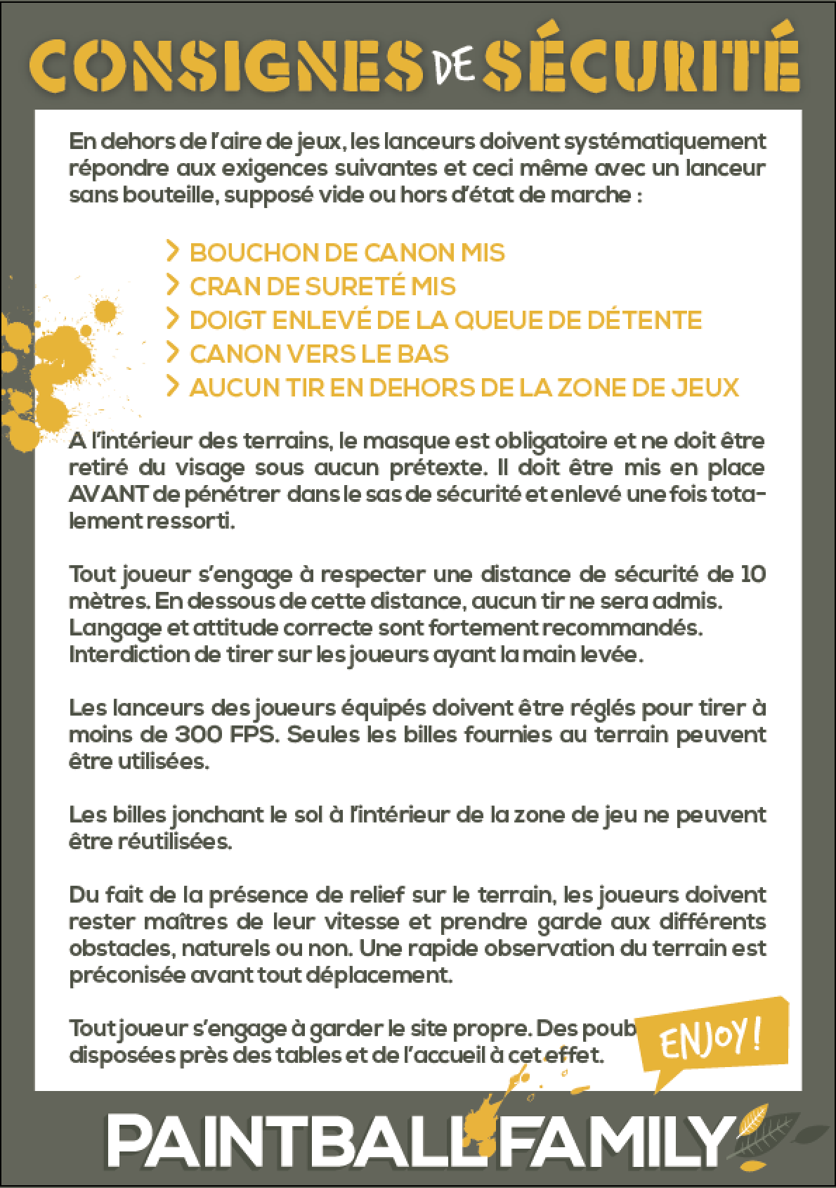 Il est interdit de sortir de la zone Paintball avec son matériel.